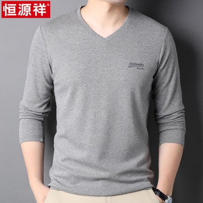 恒源祥2023春秋季装男士V领长袖t恤休闲鸡心领上衣纯色休闲打底衫