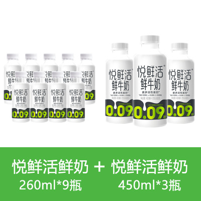 悦鲜活 260ml*9瓶+450ml*3瓶组合新鲜顺丰冷链高钙优质蛋白低温鲜牛奶