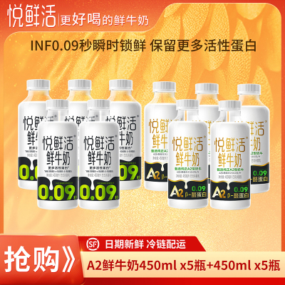 悦鲜活 A2_450mlx5瓶+鲜牛奶450mlx5瓶顺丰冷链新鲜早餐奶补钙优质蛋白低温巴氏奶