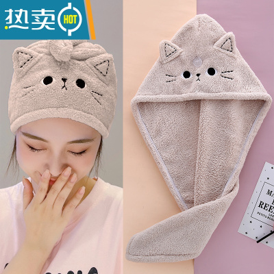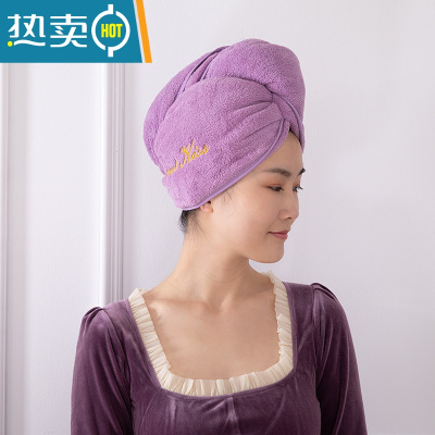 敬平可爱干发帽女吸水速干2021新款洗头擦头发器加厚浴帽包头巾 [圆帽]深紫(短发)