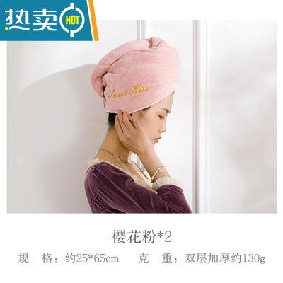 敬平2021新款吸水双层干发帽女速干加厚毛巾浴帽干发巾洗包头器 樱花粉 双层加厚(2条装)
