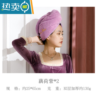 敬平2021新款吸水双层干发帽女速干加厚毛巾浴帽干发巾洗包头器 藕荷紫 双层加厚(一条装)