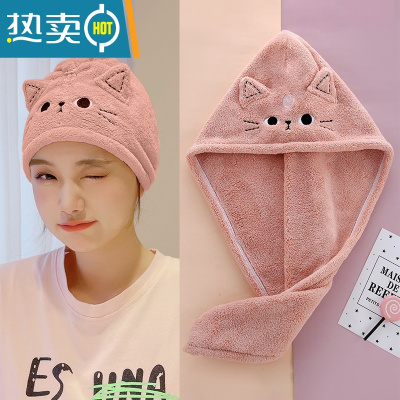 敬平干发帽女吸水速干可爱加厚2021新款浴帽洗澡擦头发干发包头巾 双层加厚180g-红鸾