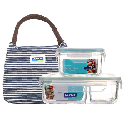 三光云彩(GLASSLOCK)韩国进口钢化玻璃分隔保鲜饭盒两件套920+490ml可微波炉加热带盖便当碗男女上班族带饭
