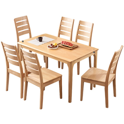 创世人 实木餐桌椅组合 原木色进口实木饭桌 北欧餐家具1.5米小户型饭桌套装