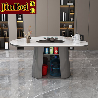锦北 岩板茶桌椅组合现代家用阳台简约茶桌办公室泡茶桌 1.0桌