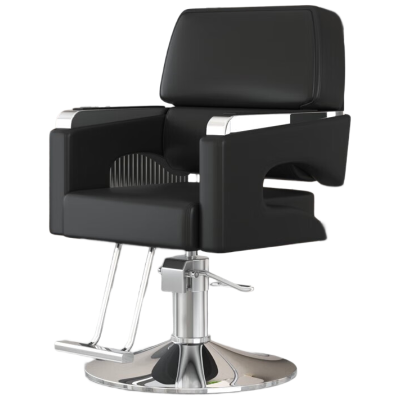 锦北理发椅美发凳子发廊专用升降旋转可放倒剪发椅黑色上座-银色圆盘