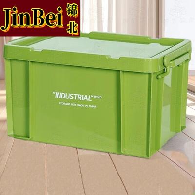 锦北塑料储物箱加厚收纳箱塑料整理箱带盖绿色520*380*320mm