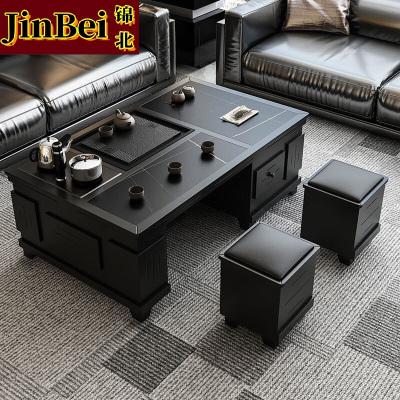 锦北火烧石功夫茶几茶桌椅组合茶具一体套装茶台一键上水1.3米黑色
