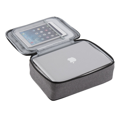 欧润哲 收纳包 灰色三层多格分层分类带提手旅行出差收纳袋