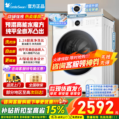 小天鹅10公斤滚筒洗衣机全自动家用 纯平自由嵌 白色款 水魔方护色护形 1.28洗净比一级能效TG10V628PLUSW