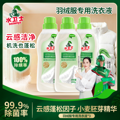 水卫仕羽绒服蓬松洗涤剂400g*3瓶洗衣液羽绒服清洁去黄去污渍去油洗白