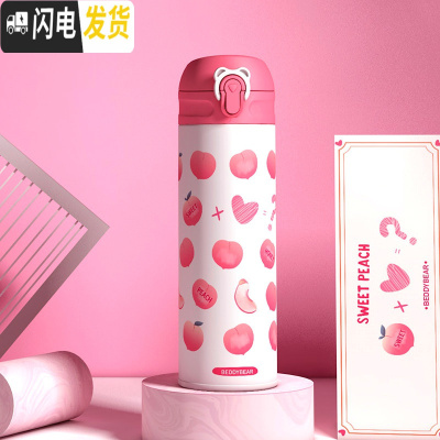 三维工匠韩国保温杯女可爱学生简约儿童瓶便携弹跳盖网红吸管水杯子 水蜜桃[直饮式]