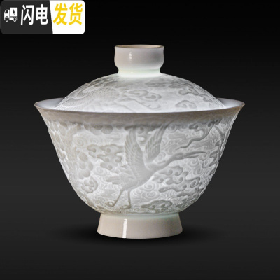 三维工匠景德镇刻主人杯陶瓷杯功夫茶具品茗茶杯白瓷杯个人杯单杯小茶碗 松鹤延年盖碗