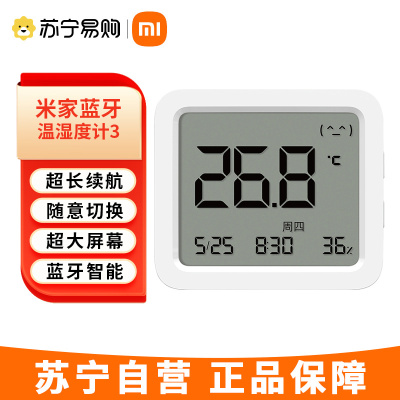 米家小米 米家智能温湿度计3 蓝牙智能联动家用室内车内高精度温湿度计 多功能时钟桌面摆放壁挂温度计