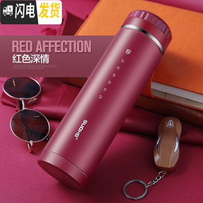 美帮汇智能保温杯男士女316不锈钢泡茶杯定制logo水杯子 奢华红(B款)