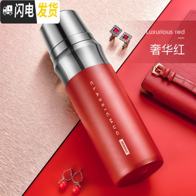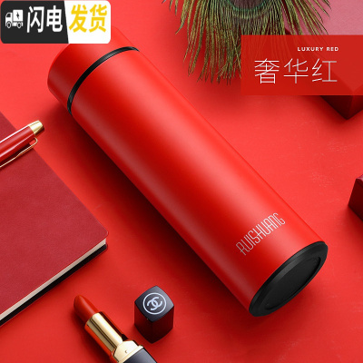三维工匠保温杯男士不锈钢水杯女学生便携大容量泡茶杯子创意个性潮流定制 奢华红