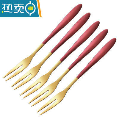 敬平水果叉套装不锈钢水果叉子ins北欧创意水果签果插可爱欧式小奢华 5支酒红果叉[5*-支.]