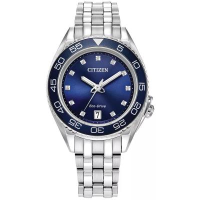 西铁城(CITIZEN)光动能女款运动奢华钻饰不锈钢腕表35mm蓝贝母表盘防水