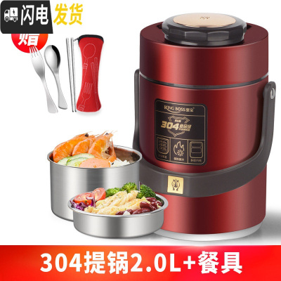 三维工匠304不锈钢真空超长保温饭盒1人便携餐盒多层学生便当桶上班族 [奢华红]304提锅2.0+餐具