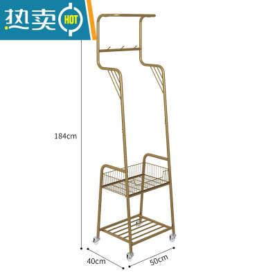 敬平挂衣架落地卧室内衣帽架简易晾衣架带轮推车家用移动收纳置物架 短款[承重稳固]奢华金+水晶轮