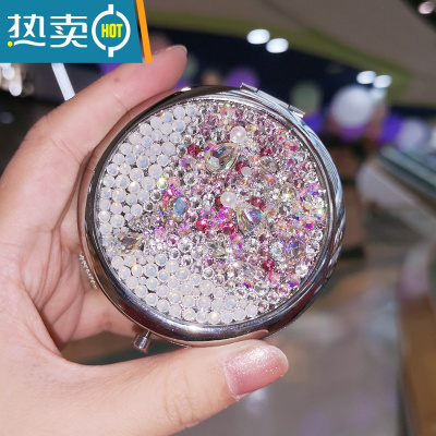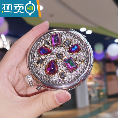 敬平奢华水钻化妆镜折叠迷你便携随身双面梳妆小圆镜子送女友闺蜜礼物便携式用镜 蛋白粉钻宝石