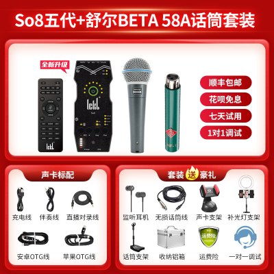 Ickb so8第五代声卡+舒尔BETA58A麦克风+话放套装手机直播电脑抖音主播唱歌k歌录音直播设备全套电容唱吧话筒