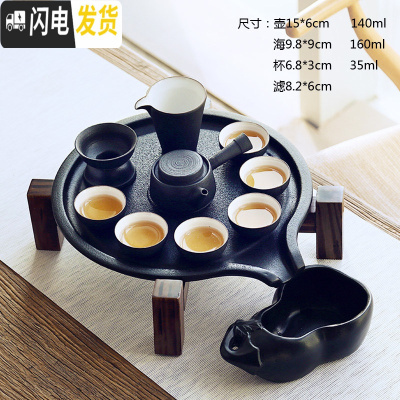 三维工匠家用紫砂功夫自动茶具套装组汝窑黑陶玻璃陶瓷石磨干泡小茶盘 05黑陶侧把壶套装