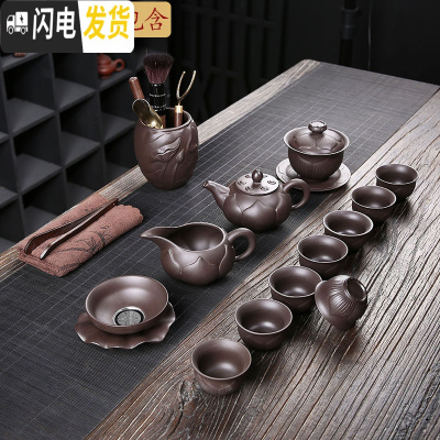 三维工匠茶具套装家用小套功夫茶杯泡茶紫砂茶壶简约喝茶办公室用简易 12-莲花岩矿紫砂-14头-泡沫安全包装