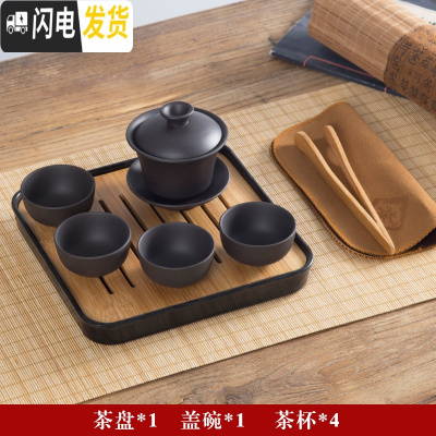 三维工匠整套潮汕功夫茶具便携紫砂壶套装 简约现代家用陶瓷茶壶茶杯茶盘 纯黑套装-盖碗方盘(4大杯)