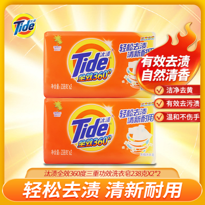 [4块]汰渍全效360度三重功效洗衣皂238克X2