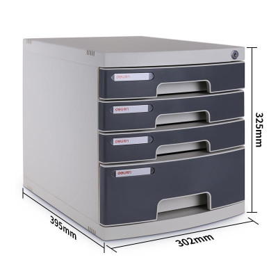 得力8854 4层带锁手拉办公桌书桌桌面收纳盒文件柜抽屉式收纳储物资料柜分类灰色