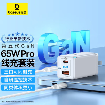 倍思(BASEUS) GaN5 Pro氮化镓快充充电器2C+U 65W 中规 白色 CCGP120002 快充数据线