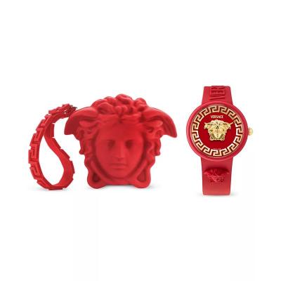 范思哲(Versace)女士石英表红色硅胶表带39mm瑞士石英机芯防水矿物玻璃