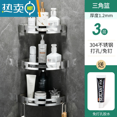 敬平免打孔304不锈钢三角卫生间置物架厕所洗手间收纳架壁挂浴室吸壁 免打孔 304三层三角置物架升级款浴室置物架