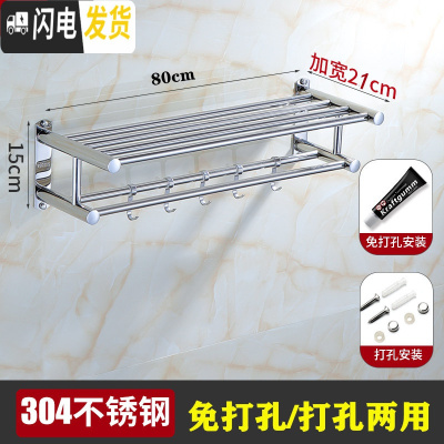三维工匠卫生间置物架2层免打孔不锈钢304浴室放衣服用品收纳架厕所吸壁式 H款80cm[免打孔两用]304加厚浴室置物架