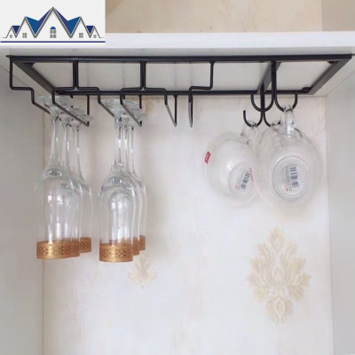创意铁艺酒杯架免钉悬挂式葡萄红酒杯架倒挂高脚杯架橱柜挂杯架 三维工匠收纳层架