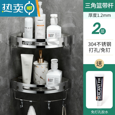 敬平免打孔304不锈钢三角卫生间置物架厕所洗手间收纳架壁挂浴室吸壁 免打孔 304双层三角置物架升级带杆浴室置物架