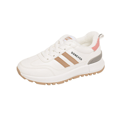 加绒厚底皮面运动鞋新款鞋子百搭时尚轻便防滑软底老爹鞋