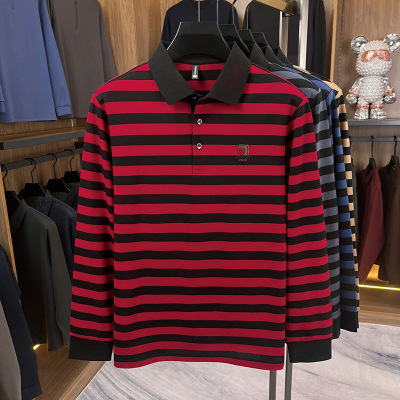 莫代尔拼色长袖男士t恤秋季新款商务翻领透气polo衫男