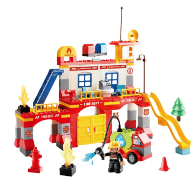 145颗粒消防局积木大颗粒警察局套装积木消防车系列儿童益智玩具男孩子3-6周岁1626-1