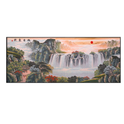 中式山水画客厅挂画新中式沙发背景墙装饰画中式壁画中国风国画字画横织锦金丝绣装饰画