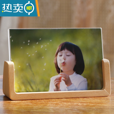 敬平相框摆台5寸6寸7寸8寸亚克力创意加洗照片A4logo刻字 U型榉木横款 6寸