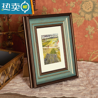 敬平美式复古绿小相框摆台高级感5寸6寸7寸8寸10寸12相框挂墙打印照片 法蓝 16寸[挂墙]内径30.3*40.5