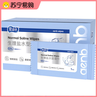 爱恩倍一次性生理盐水湿巾清洁无菌湿纸巾温和擦脸口鼻清洁独立装