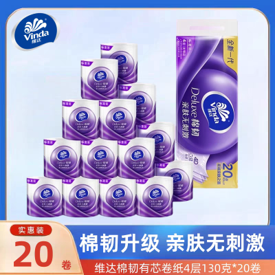 维达卷纸棉韧有芯130克20卷4层加厚卫生纸厕纸擦手卷筒纸巾实惠装