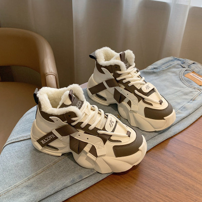厚底女鞋新款冬季高帮加绒保暖老爹鞋百搭休闲雪地靴