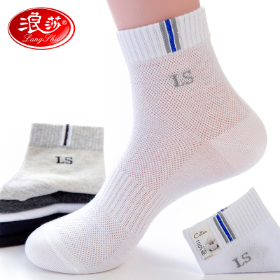浪莎袜子男薄款透气防臭中筒棉袜青少年白色网眼运动夏天纯棉男袜