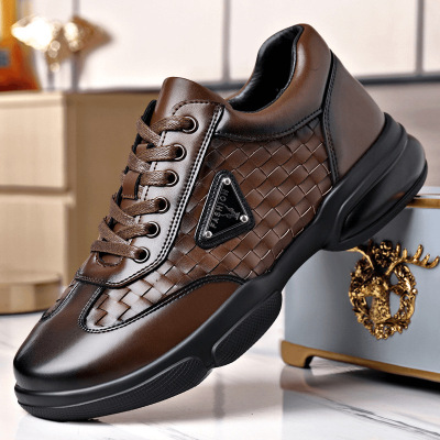 休闲鞋男学生春季新款编织时尚男鞋男士软底透气系带圆头运动休闲