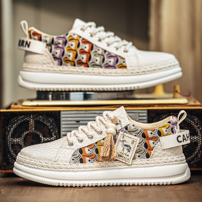 牛皮男鞋子2023春季新款歪头小丑鞋潮真皮透气百搭运动休闲鞋男士